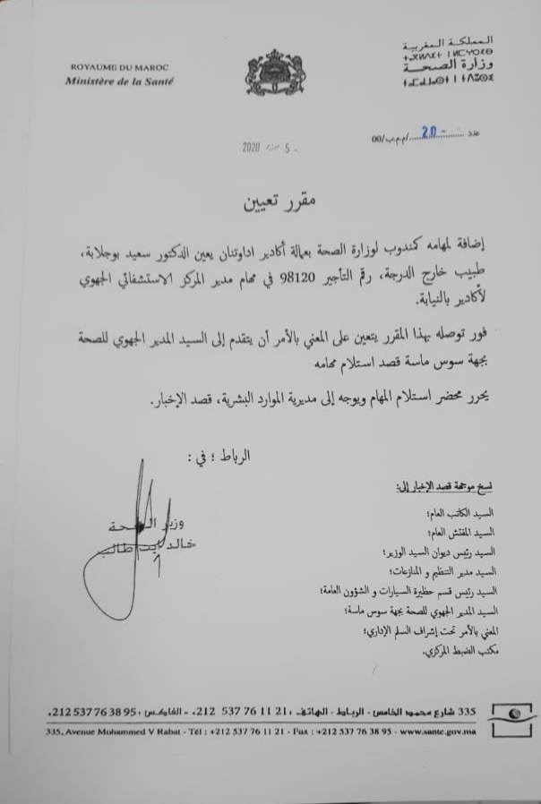 قرار الإعفاء والتعيين جاء إثر زيارة مفاجئة قام بها وزير الصحة إلى عدد من المرافق الصحية بأكادير والمناطق المحيطة بها، تزامنا مع الزيارة الملكية للمنطقة