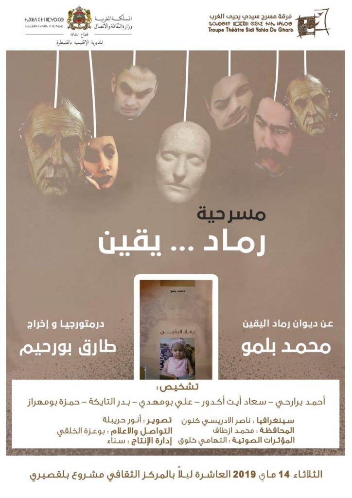بعد العرض الناجح لمسرحية “رماد.. يقين” بمدينة الرباط، في إطار فعاليات الملتقى الوطني الثامن للمقاهي الثقافية، وفي إطار الاحتفال باليوم الوطني للمسرح، برمجت المديرية الإقليمية لوزارة الثقافة والاتصال بالقنيطرة عرضا جديدا للمسرحية بالمركز الثقافي لمدينة مشرع بلقصيري، يوم الثلاثاء 14 ماي 2019، في الساعة العاشرة ليلا.