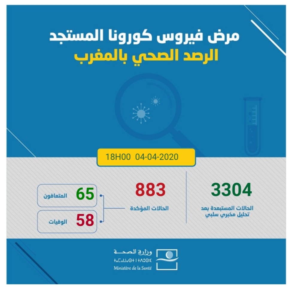 وبذلك يصل العدد الإجمالي للمصابين بالفيروس في المغرب إلى 883 حالة.
