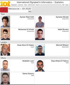 هذا وتعد الأولمبياد العالمية للبرمجة، من بين أهم المسابقات بالنسبة لطلاب المدارس الثانوية والتي أتت كاقتراح من منظمة الأمم المتحدة للتربية اليونسكو وتم تنظيمها لأول مرة عام 1989 غير أن نسخة هذه السنة تأتي بصفة إستثنائية حيث أقيمت عن بعد بسبب جائحة كورونا التي أتت على العديد من القطاعات وألزمت العمل بصيغ بالتطيبقات الالكترونية.ومثل المغرب هذه السنة كل من التلاميذ