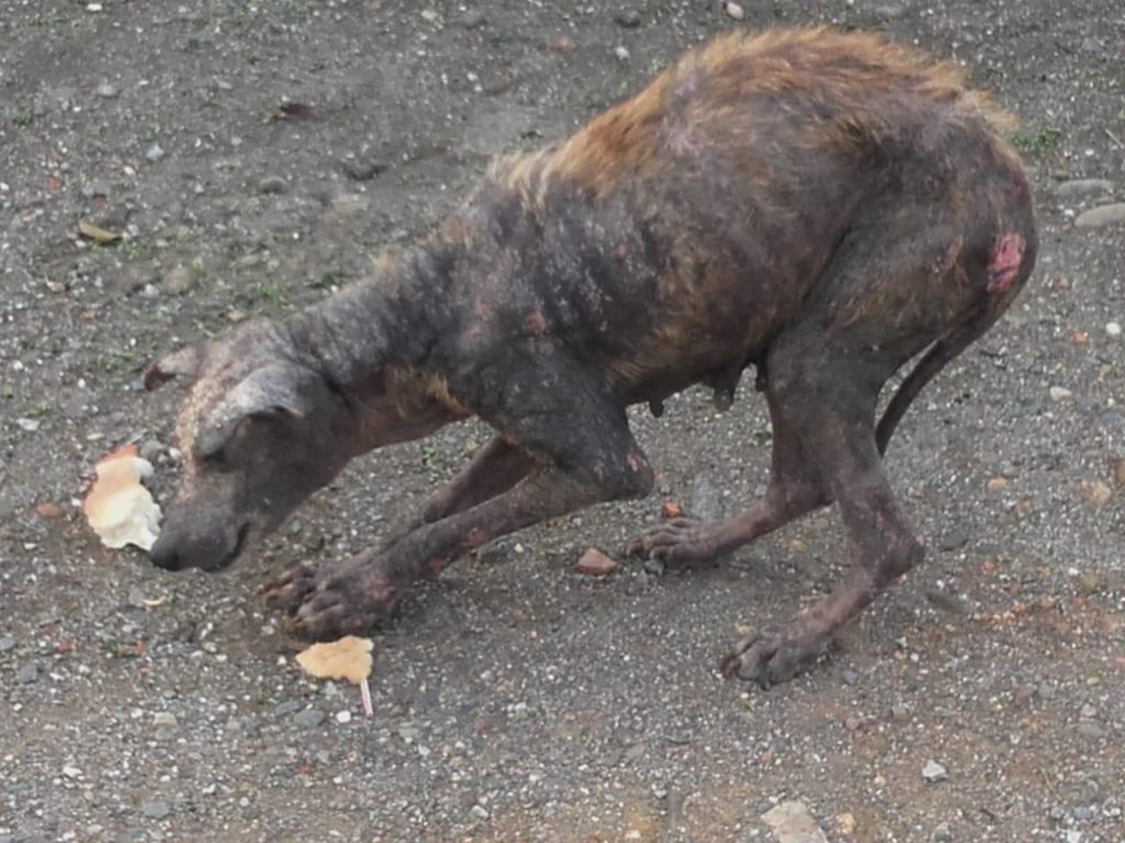 ومن الحالات المنتشرة في بواحمد، اخترنا العيِّنة التي في الصور البالغ فيها المرض منتهاه، يتجول هذا الكلب “ة” المريض منذ بداية إصابته التدرجية الطويلة، في أماكن تعرف حركية للمواطنين، ما بين مدخل مقر جماعة بني بوزرة، ومدخل مقر قيادة بواحمد، وبوابة إقامة قائد القيادة، بشكل يومي، ينام ويتمرغ في التراب، ويلعق النباتات والأشياء المختلفة تاركا فيها لُعابه، ويقضي حاجته تبوُّلاً وتغَوُّطاً.