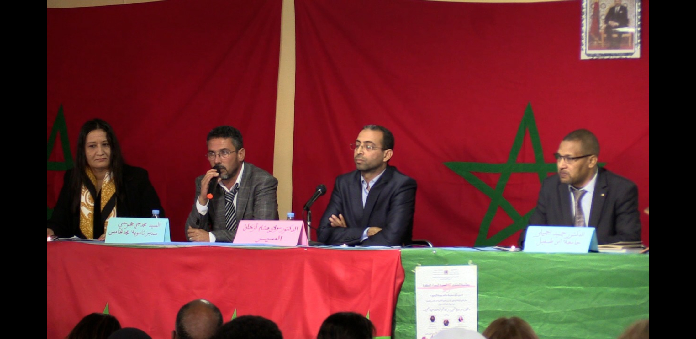 بعد ذلك تناول الدكتور مولاي هشام أزكان الكلمة قائلا :” إني أكلمكم كابن من أبناء الصحراء لأفتخر بما قدّمه المغرب من أجل تعمير ربوع جنوب المغرب اقتصادا وتعميرا ويجب علينا إذكاء الحض الوطني من أجل إشعاركم وإشعار هذا الجيل الجديد بوطنيته والافتخار بذلك “.