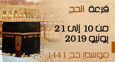 تخبر وزارة الأوقاف والشؤون الإسلامية المواطنين الذين تقدموا بطلب تسجيلهم لأداء مناسك الحج خلال موسم حج عام 1441 ه ـ أن عملية إجراء القرعة لتحديد القوائم النهائية لهذا الموسم ، ستجرى يوم الاثنين 10 يونيو 2019 إلى غاية الجمعة 21 يونيو 2019 وذلك: