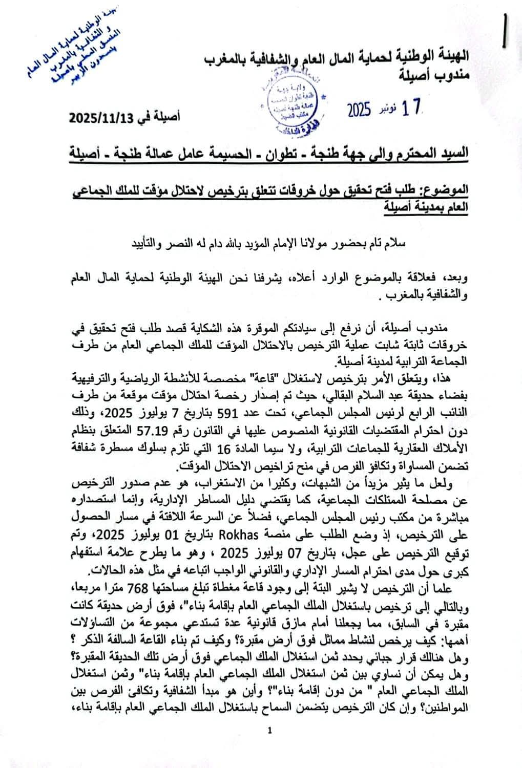 الملف اليوم يشكل أكبر اختبار للسلطات الولائية، وسط توقعات بأن يقود التحقيق – إن فُتح – إلى كشف شبكة من التجاوزات داخل جماعة أصيلة.