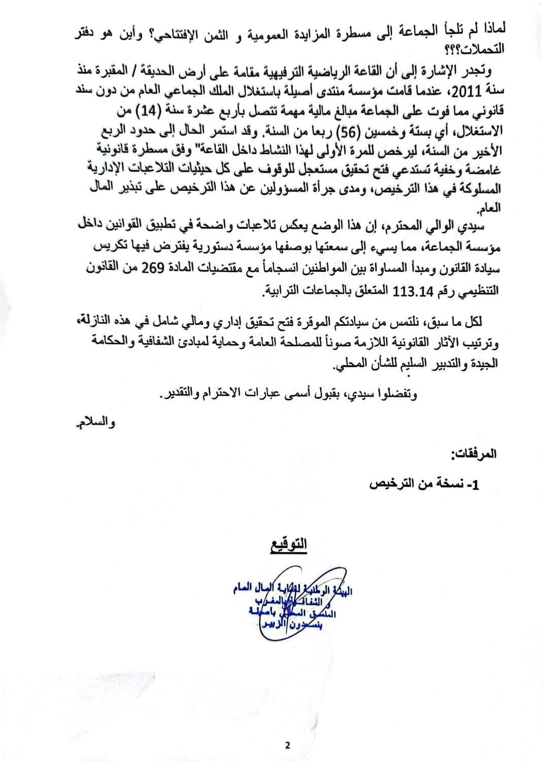 كيف سمح ببناء قاعة فوق أرض مقبرة؟ من رخص للبناء؟ أين القرار الجبائي؟ ولماذا مُنح الترخيص بسرية وسرعة قياسية؟ وكيف تم حرمان باقي المواطنين من مبدأ تكافؤ الفرص؟