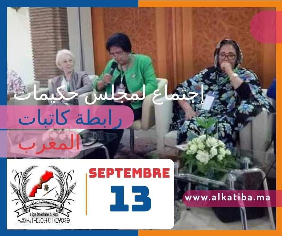 تحتضن مدينة الرباط يوم الجمعة 13 شتنبر 2019 ، بالمكتبة الوطنية ،ابتداء من الساعة الرابعة والنصف، الدورة الثانية لمجلس حكيمات رابطة كاتبات المغرب الذي ترأسه الشاعرة مليكة العاصمي، وذلك في أفق وضع استراتيجية تتأسس على مشاركة المرأة المغربية المنتجة والفاعلة ثقافيا وتربويا واجتماعيا في التنمية الثقافية ببلادنا، باعتبارها جزءا أساسيا من التنمية الشاملة والمستدامة.