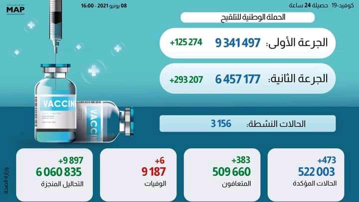 473 إصابة جديدة وحوالي ستة ملايين و457 ألف شخص تلقوا الحقنة الثانية من اللقاح