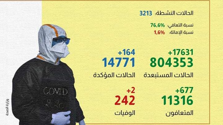 فيروس كورونا:164 إصابة ،677 حالة شفاء و02 وفيات