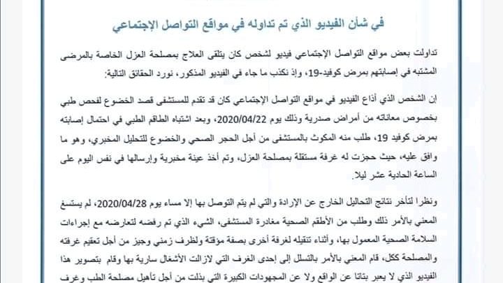الخميسات:مندوبية الصحة تفند ما جاء في الفيديو الذي تم تداوله في مواقع التواصل الاجتماعي
