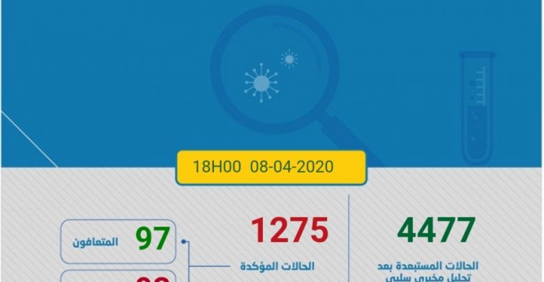 فيروس كورونا: 1275 حالة مؤكدة، 93 وفاة و 97 حالة شفاء