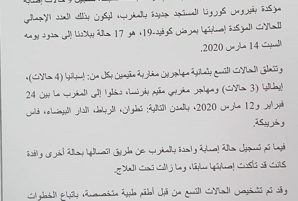 عاجل.. المغرب يعلن عن تسجيل 9 حالات جديدة مصابة بفيروس كورونا
