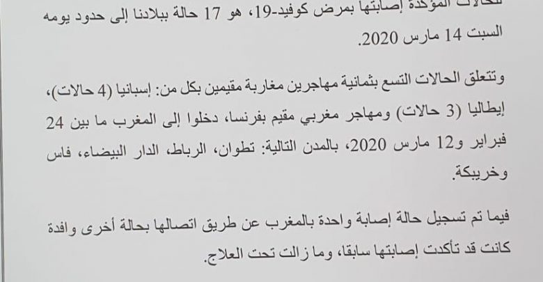 وزارة الصحة تعلن عن تسجيل تسع حالات إصابة بفيروس كورونا المستجد