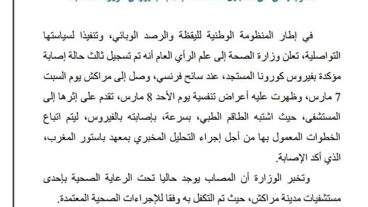 حالة ثالثة لمصاب بفيروس كورونا لسائح فرنسي بمراكش