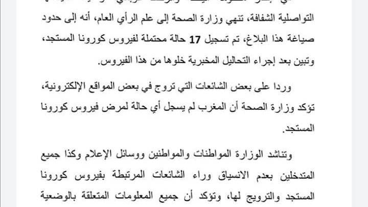 وزارة الصحة: المغرب لم يسجل أي حالة لمرض فيروس “كورونا”
