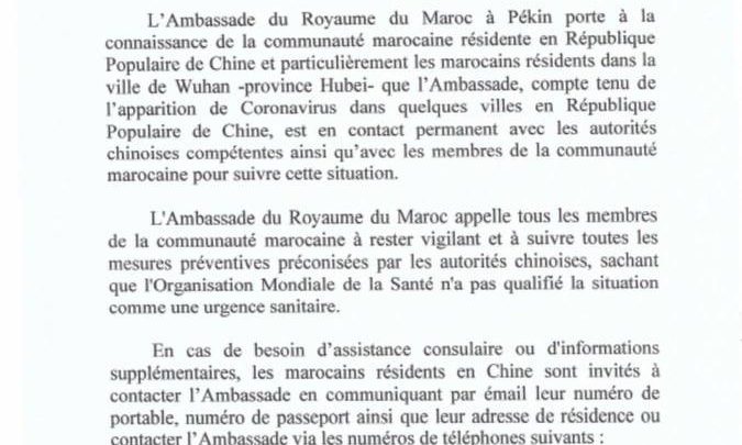 بكين: سفارة المغرب توصي الجالية المغربية بالتقيد بالإجراءات الصينية