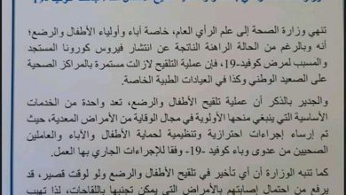 وزارة الصحة تحذر من عواقب تأخير التلقيح على الأطفال والرضع