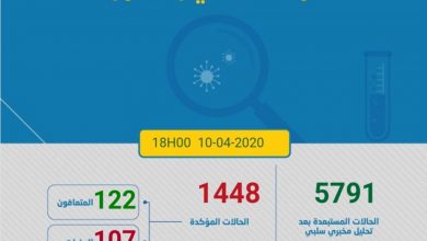 فيروس كورونا: 74 إصابة جديدية خلال 24 ساعة. والحصيلة 1448 إصابة مؤكدة