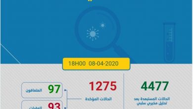 فيروس كورونا: 1275 حالة مؤكدة، 93 وفاة و 97 حالة شفاء