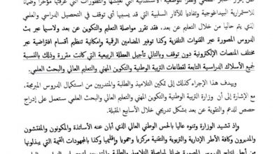 وزارة التربية الوطنية: مواصلة التعليم عن بُعْد وتأجيل العطلة الربيعية