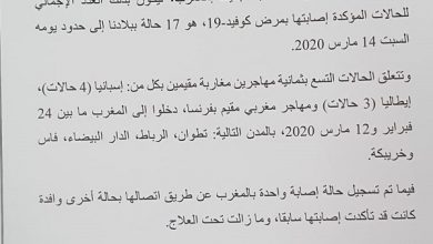 عاجل.. المغرب يعلن عن تسجيل 9 حالات جديدة مصابة بفيروس كورونا